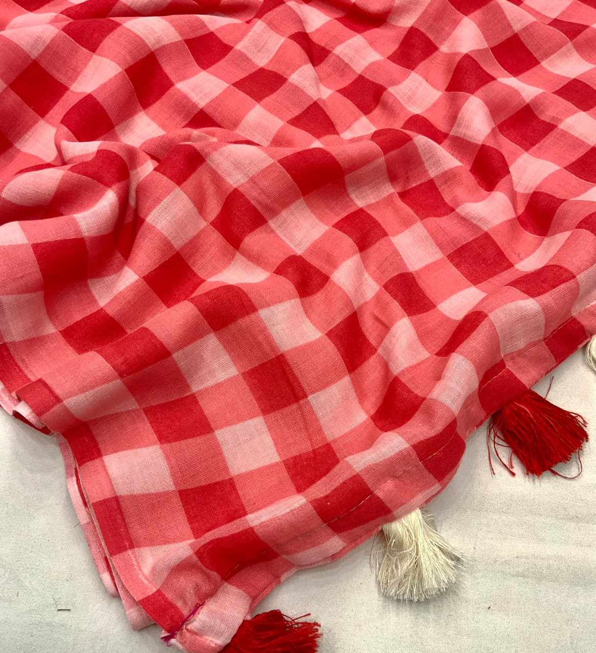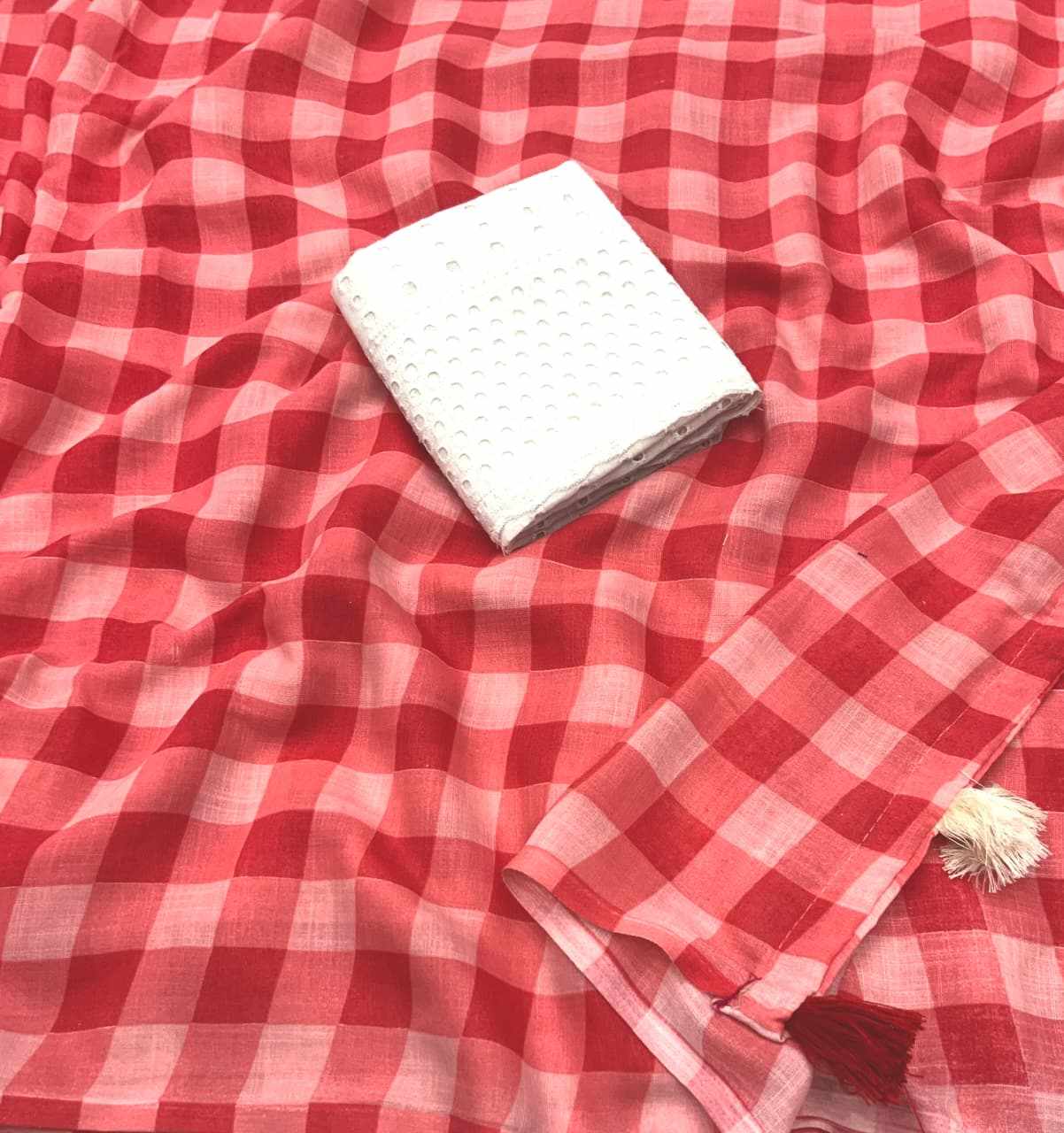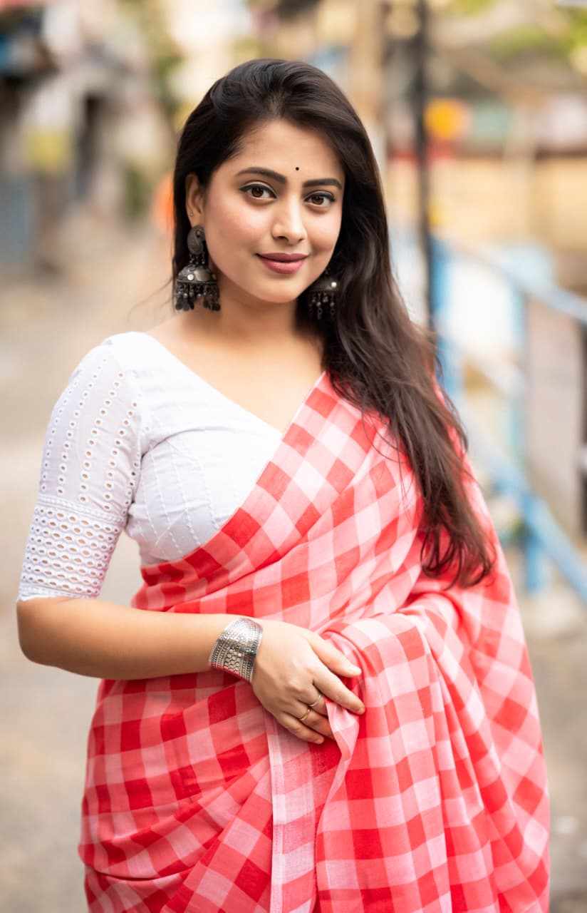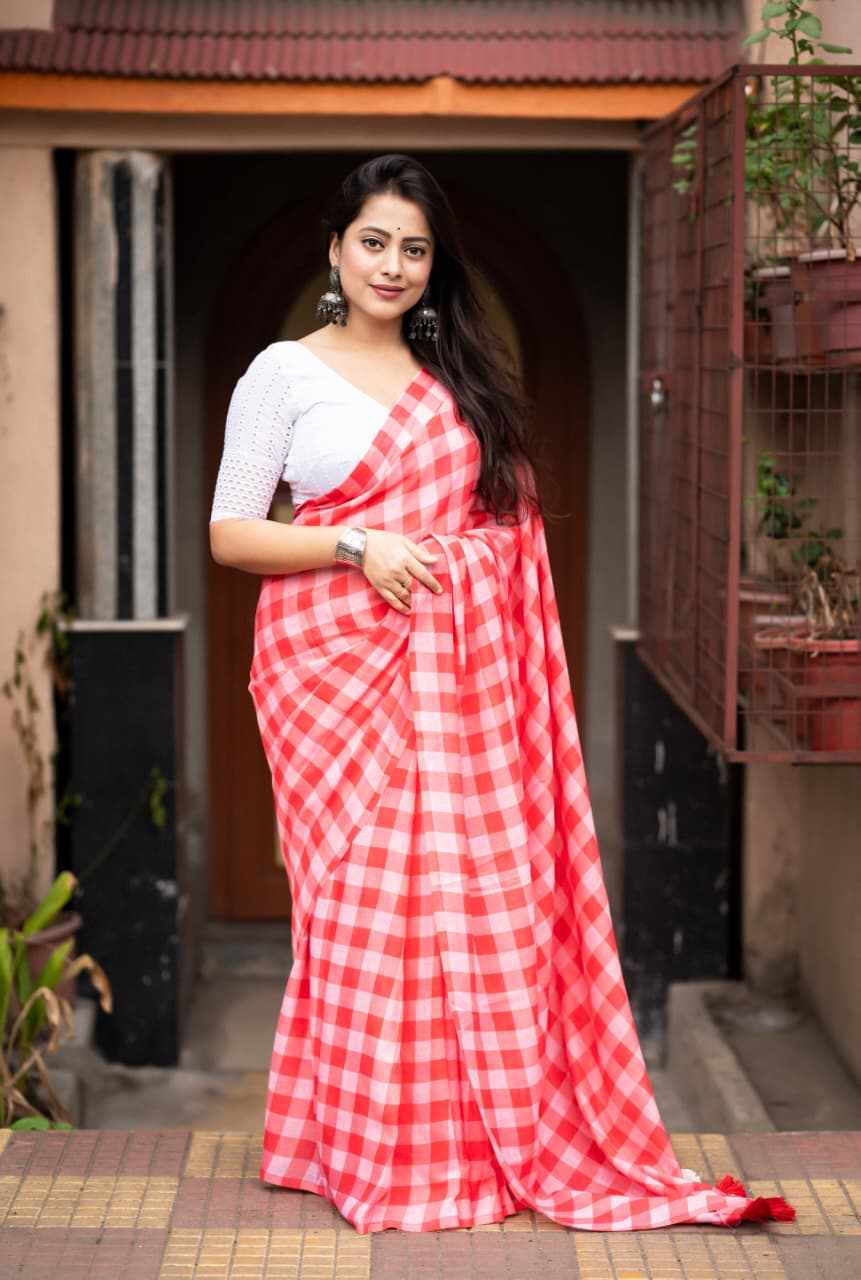 Quality- soft linen saree with trendy chex print design.